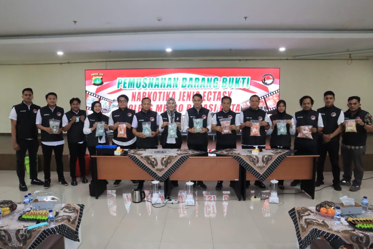 BEKASI, JMPnews — Dalam upaya mendukung program Astacita yang digagas oleh Presiden Republik Indonesia untuk memberantas narkotika di Indonesia, Satres Narkoba Polres Metro Bekasi Kota menggelar kegiatan pemusnahan barang bukti narkotika golongan I jenis Ekstasi di Aula Polres Metro Bekasi Kota.