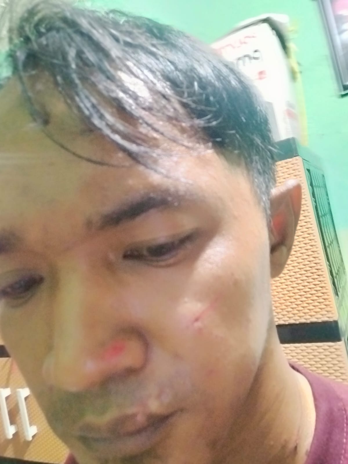 “Saya mengalami luka cakar, digigit di pergelangan tangan dan bengkak pada jidat kepala saya” ujar pria yang akrab disapa Tile itu usai membuat laporan polisi.