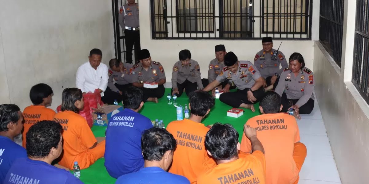 Kapolres Boyolali AKBP Indra Maulana Saputra memimpin langsung kegiatan buka puasa bersama yang turut dihadiri Wakapolres dan para Pejabat Utama (PJU). Kehadiran pimpinan di dalam ruang tahanan menjadi pesan kuat bahwa proses penegakan hukum tetap berjalan seiring dengan pendekatan kemanusiaan.