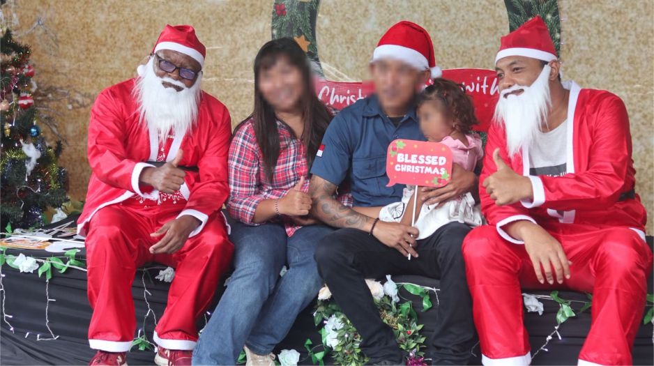Kostum Sinterklas dikenakan oleh dua warga binaan Lapas Semarang, Salah satunya merupakan warga binaan asing yang berasal dari Kenya.