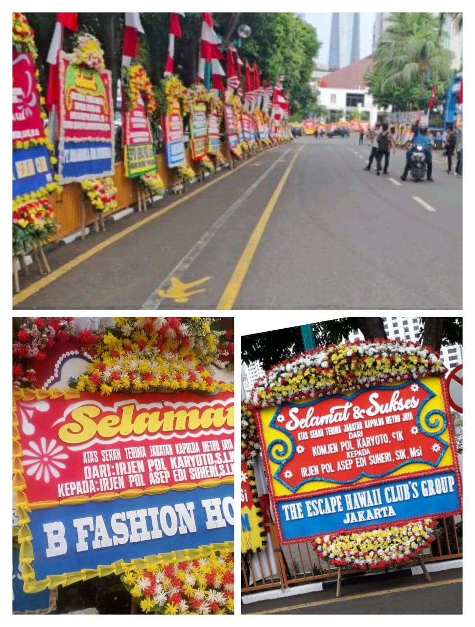 Seperti hal biasa jika ada pergantian tampuk kepemimpinan, maka ribuan Karangan bunga ucapan selamat akan memenuhi wilayah Polda Metro Jaya. Bahkan hingga keluar wilayah Polda atau di sekitar gerbang Polda.