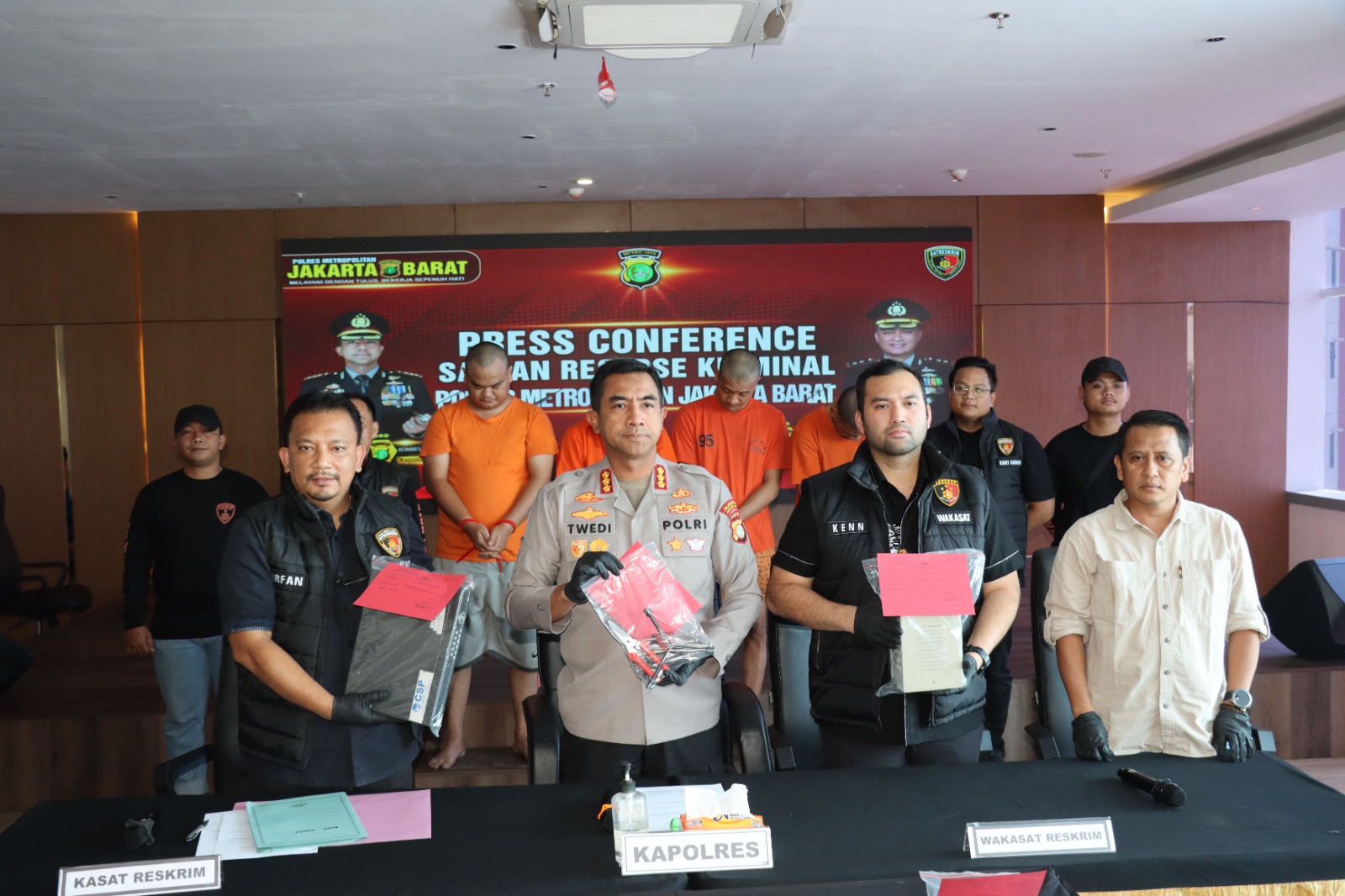 Kapolres Metro Jakarta Barat Kombes Pol Twedi Aditya Bennyahdi, didampingi Kasat Reskrim AKBP Arfan Zulkan Sipayung, dalam konferensi pers Kamis (24/7/2025), menjelaskan bahwa para pelaku ditangkap setelah dilakukan serangkaian penyelidikan intensif.