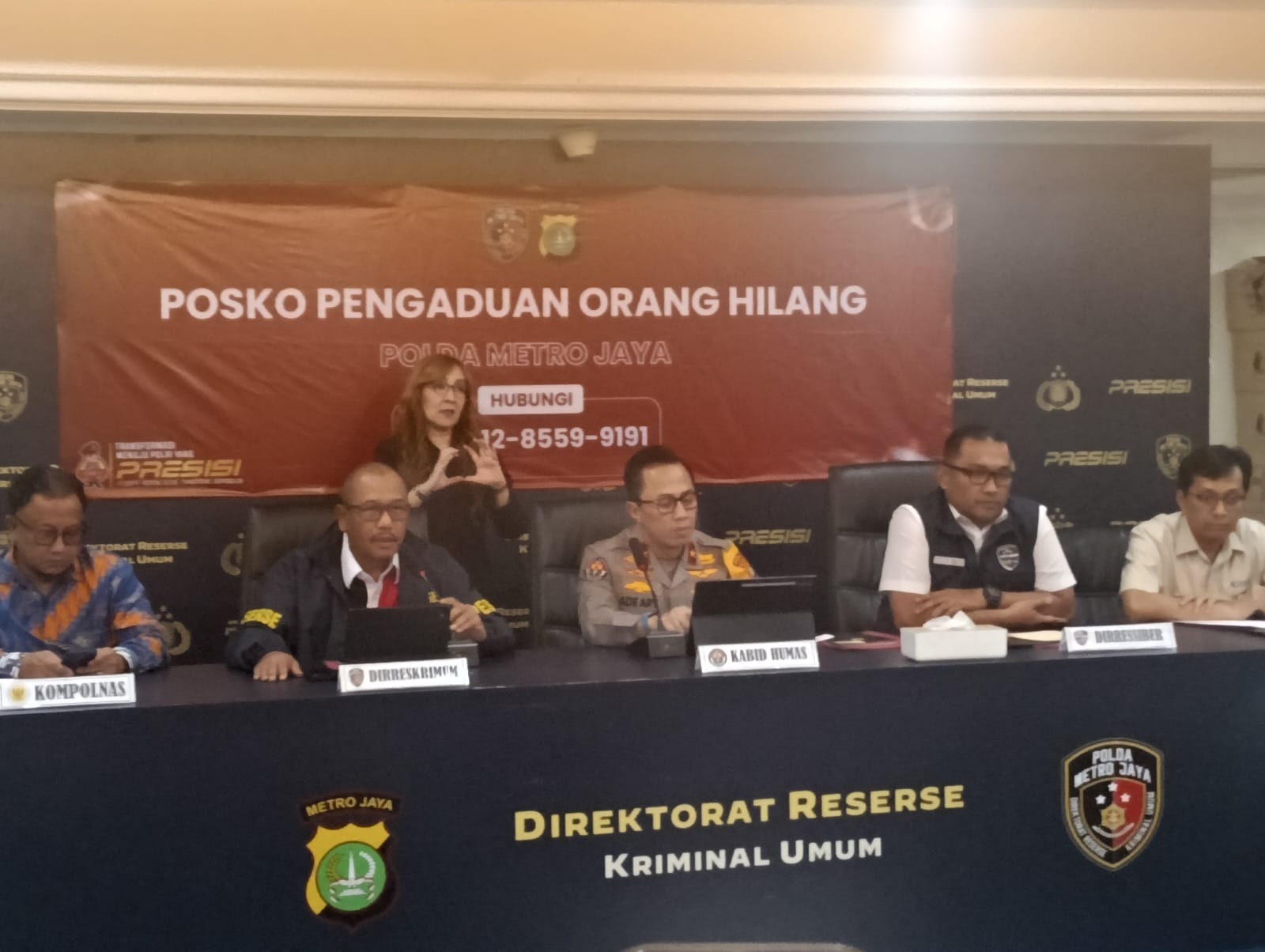 Diketahui Ditreskrimum Polda Metro Jaya telah membentuk posko pengaduan orang hilang di Aula Satya Haprabu, dan dapat menghubungi nomor 081285599191.