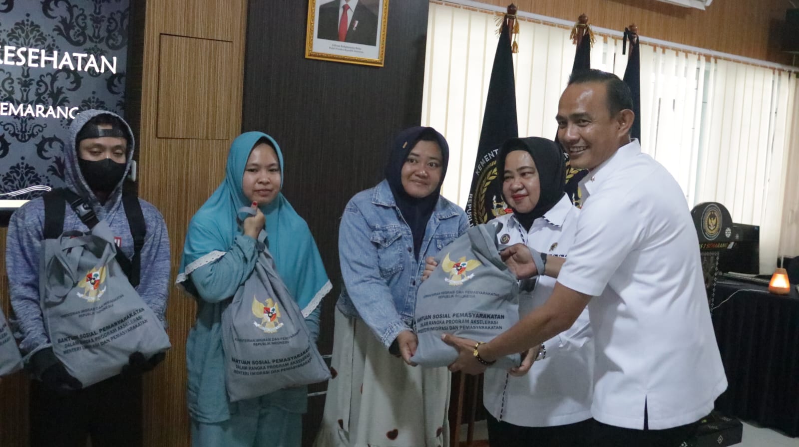 Berbeda dari biasanya, penyerahan bingkisan kali ini dilakukan langsung oleh Direktur Perawatan Kesehatan dan Rehabilitasi, Adhayani Lubis, didampingi oleh Kepala Lapas Kelas I Semarang, Fonika Affandi, bertempat di Aula Merdeka Lapas Semarang.