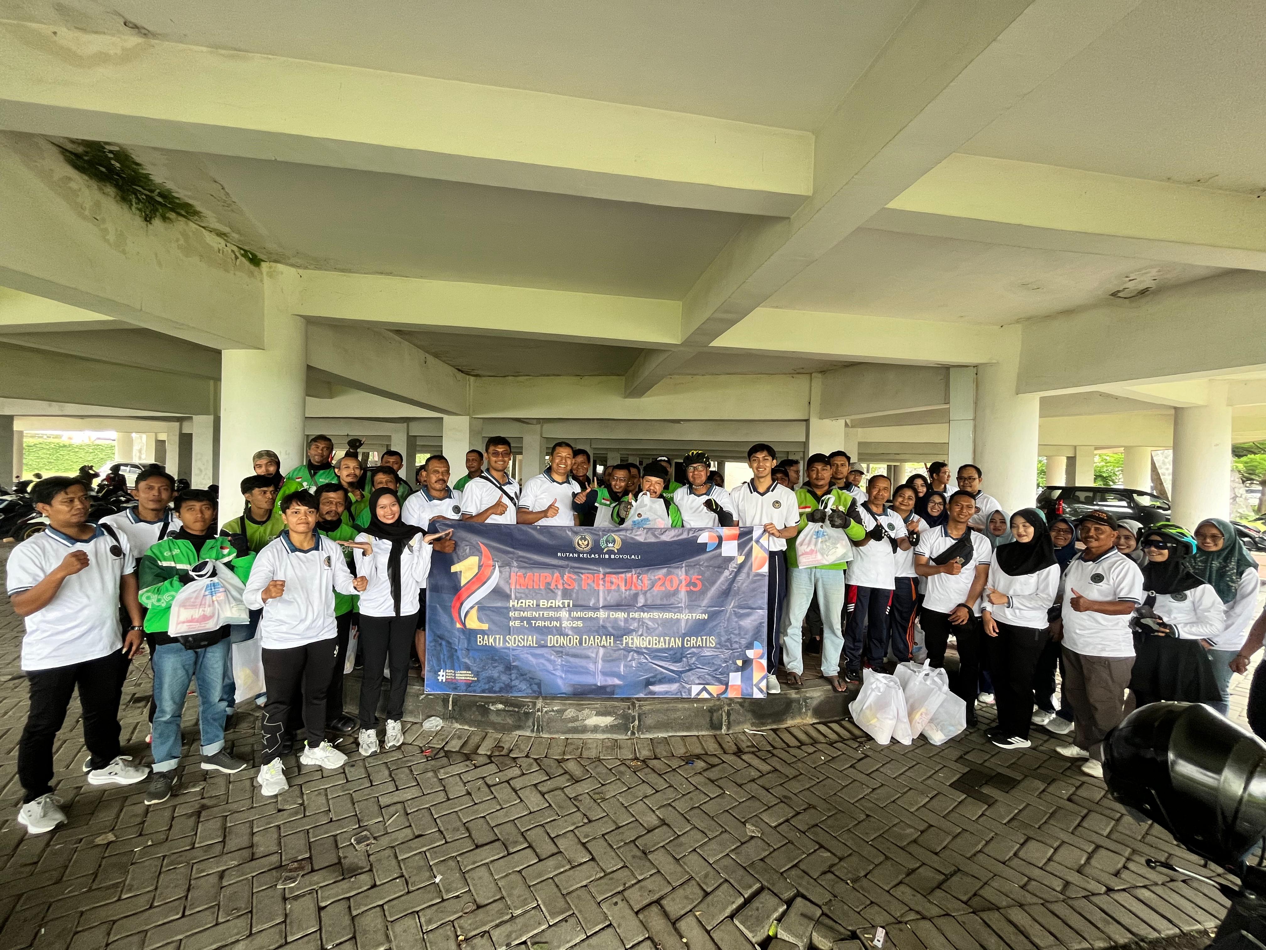 Bakti sosial ini diwujudkan melalui pembagian paket sembako kepada 30 pengemudi ojek online di wilayah Kabupaten Boyolali. Aksi sosial tersebut diawali dengan gowes Jumat pagi yang diikuti oleh Kepala Rutan Boyolali, pejabat struktural, dan pegawai Rutan Boyolali.