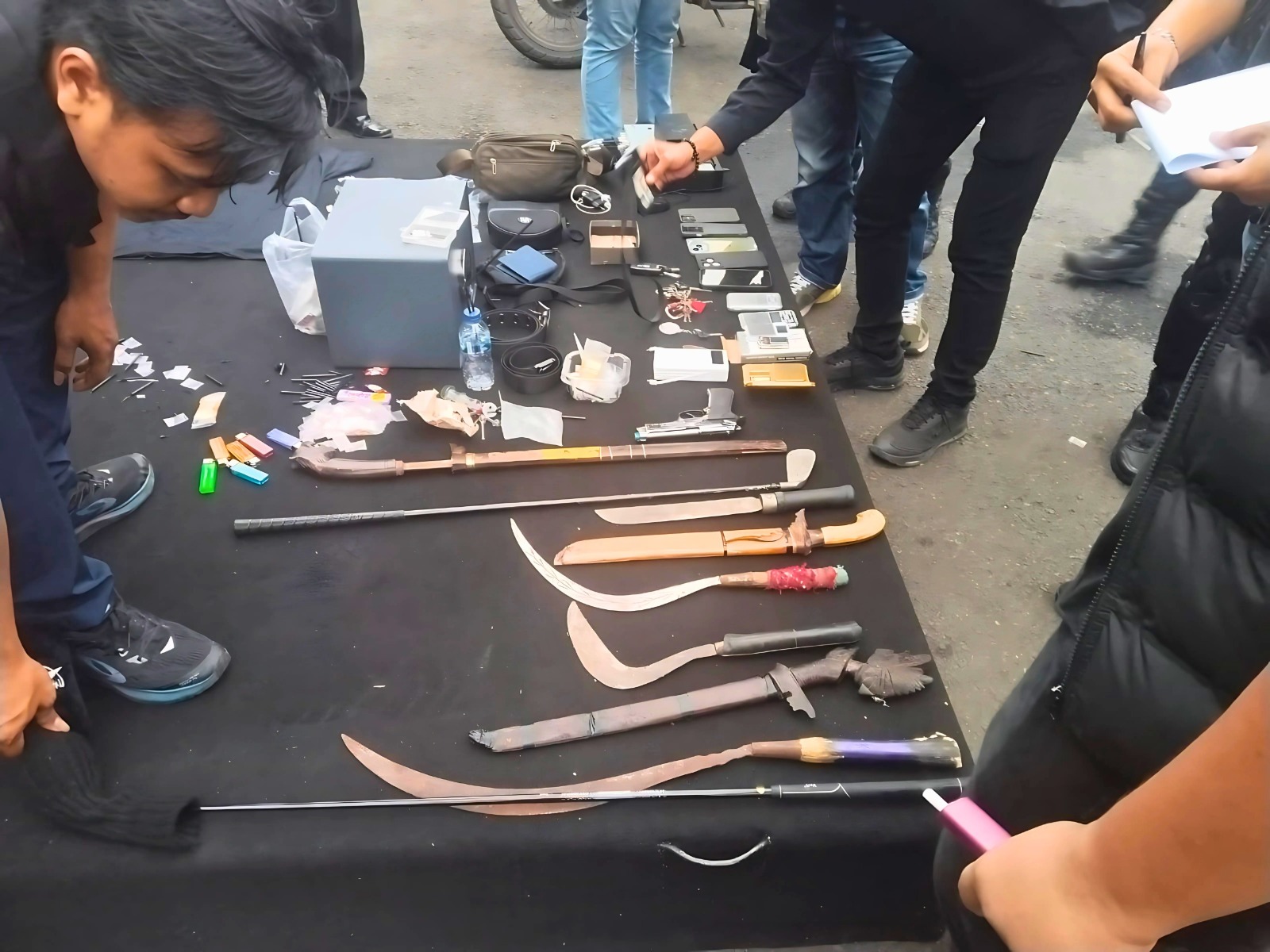 Dari hasil penggerebekan, ditemukan sejumlah barang bukti berupa narkoba, senjata tajam, alat hisap, timbangan digital, brankas penyimpanan narkoba, serta sejumlah uang tunai. Meskipun pemilik rumah berhasil melarikan diri, upaya pencarian intensif pun dilakukan. Dalam prosesnya, petugas berhasil mengamankan 9 (sembilan) terduga tersangka beserta barang bukti berbagai jenis senjata tajam, ponsel, obat-obatan terlarang, dan perlengkapan terkait penyalahgunaan narkoba.