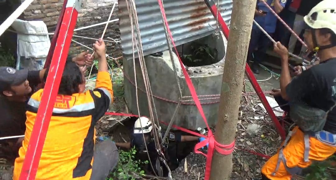 ” Bibir sumur menggantung, kondisinya rawan, karena tanahnya longsor sehingga kita pastikan aman dulu. Kedalaman sekitar 19 meter dengan diameter sekitar satu meter. ” Ungkapnya